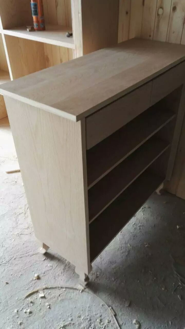 特地讓木工師傅幫我做幾個柜子,客廳的大書柜、鞋柜和頂?shù)豕瘢有一個餐邊柜,板材都是設(shè)計師推薦的,很不錯,木工師傅的手工也很贊,完全做出了我想要的樣子。